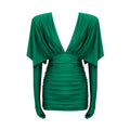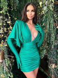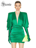 VC Fashion Streetwear Women'S Dress For Special Event Sexy V Neck Draped Design Green Slim Thin Mini Dress With Gloves
