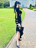 VC Hollow Out Sexy Black Dress Women Long Sleeve Fashion Ruffle Night Club Party Wear Soft Velvet Maxi Dress Vestidos