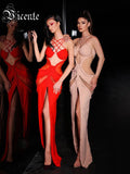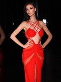 VC Mermaid Dress For Women Sexy Hollow Out See Through Braided Rope High Slit Long Evening Party Dress Vestido
