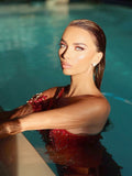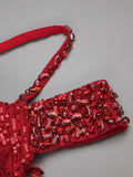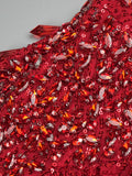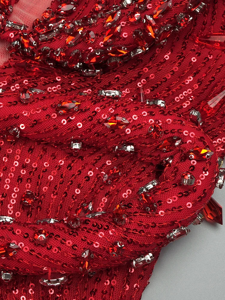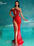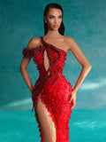 VC Red Diamonds Mermaid Dress Beaded Diagonal One-shoulder High Split Crystals Details Maxi Banquet Evening Party Gown