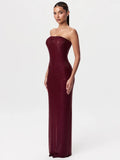 VC Redwine Beaded Strapless Long Maxi Dress For Women Elegant Sleeveless Backless Sparkle Crystals Bodycon Cocktail Evening Gown