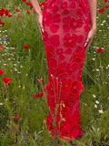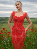 VC Romantic Sleeveless Red Floral Mermaid Dress for Garden Weddings Party Evening Gown