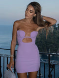 VC Sexy Strapless Mini Dress Women Chic Classy Hollow Out Ring Sleeveless Bodycon Bandage Dress Summer 2023 Trendy