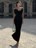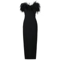 VC Woman Strapless Feather Design Dress For Party Chic Bodycon Bandage Black Long Dress Vestido