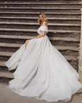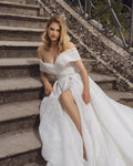 Vestido de noiva romântico em corte A, mangas tomara que caia e uma cintura natural lisonjeira para um visual nupcial atemporal