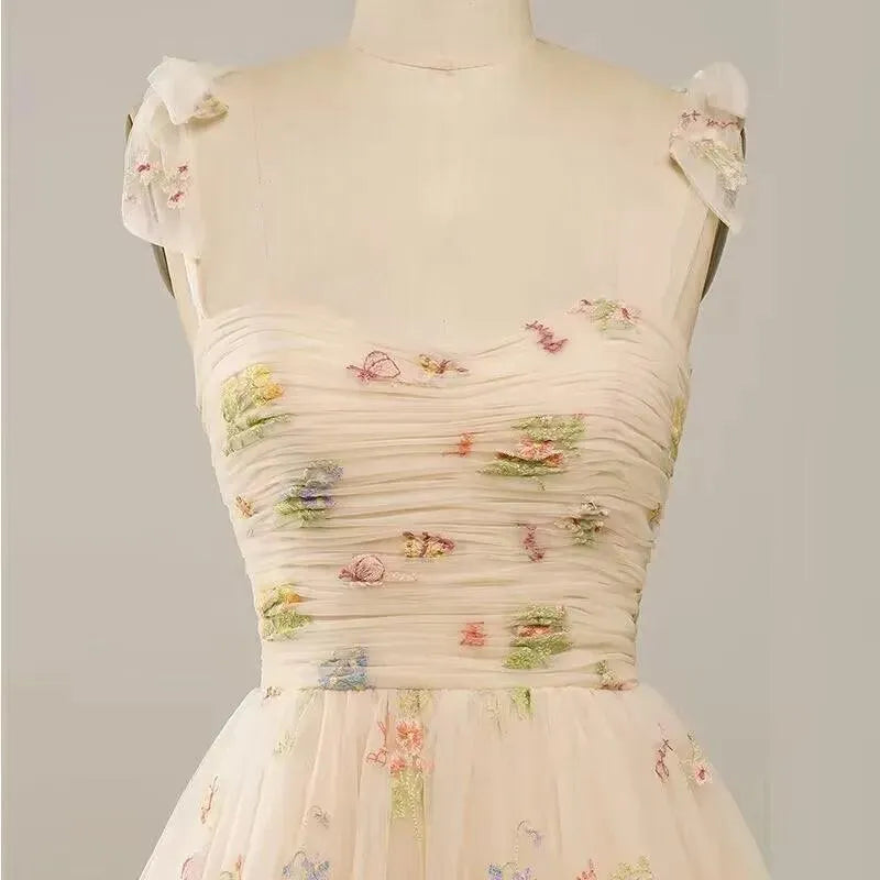 Vestidos de baile curtos personalizados Fairy Forest Green Alças finas Flores coloridas Renda Festa à noite