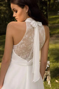 Vestidos de noiva clássicos em linha A para mulheres, sem mangas, gola alta, laço, chiffon, vestidos de noiva, brautmode, personalizados