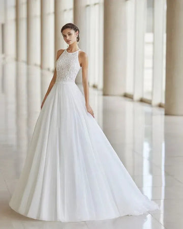 Vestidos de noiva sexy em linha A para mulheres, apliques de renda, vestidos de noiva modernos, vestidos de noiva, vestidos de noiva