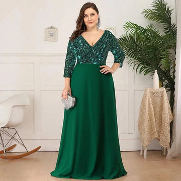 Vestidos Plus Size para Mulheres Elegantes Lantejoulas Chiffon Vestido de Festa À Noite Moda Maxi Formal Casamento Luxo Vestidos de Coquetel