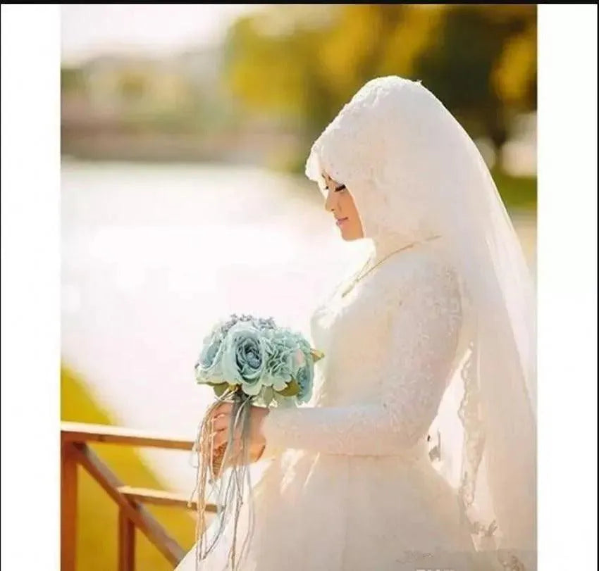 Vinca ensolarado muçulmano vestidos de noiva manga longa de noiva robe de mariage árabe luxo longo trilha renda vestido de noiva vestido de noiva