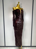 Women 2025 Luxury Sequin Celebrity Sexy Off Shoulder Long Bodycon Dress Elegant Evening Club Party Fashion Birthday Dresses