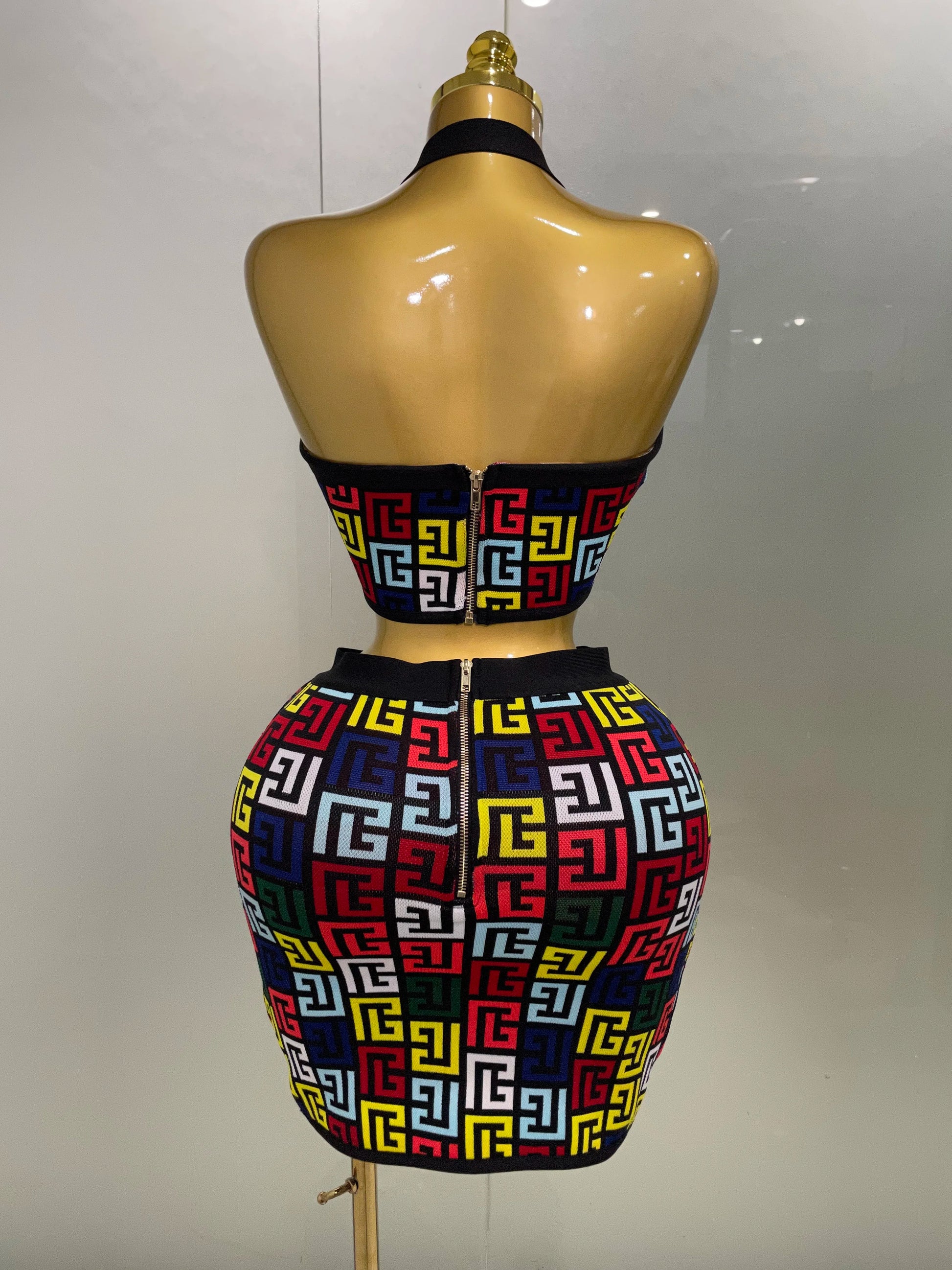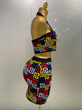 Women 2025 New Sexy Backless Halter Jacquard Two Piece Mini Skirt Bandage Set Celebrity Designer Evening Party Women's Set
