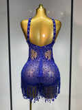 Women Sexy Backless blue Rhinestone Tassel Bodysuit Evening Party Club Singer Stage Performance Costume Luxury Birthday Dress