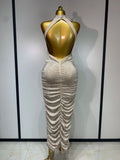 Women Sexy Backless Sleeveless Sparkly Diamonds Dress Slim Formal Elegant Celebrity Cocktail Party Luxury Birthday Gown Vestido