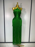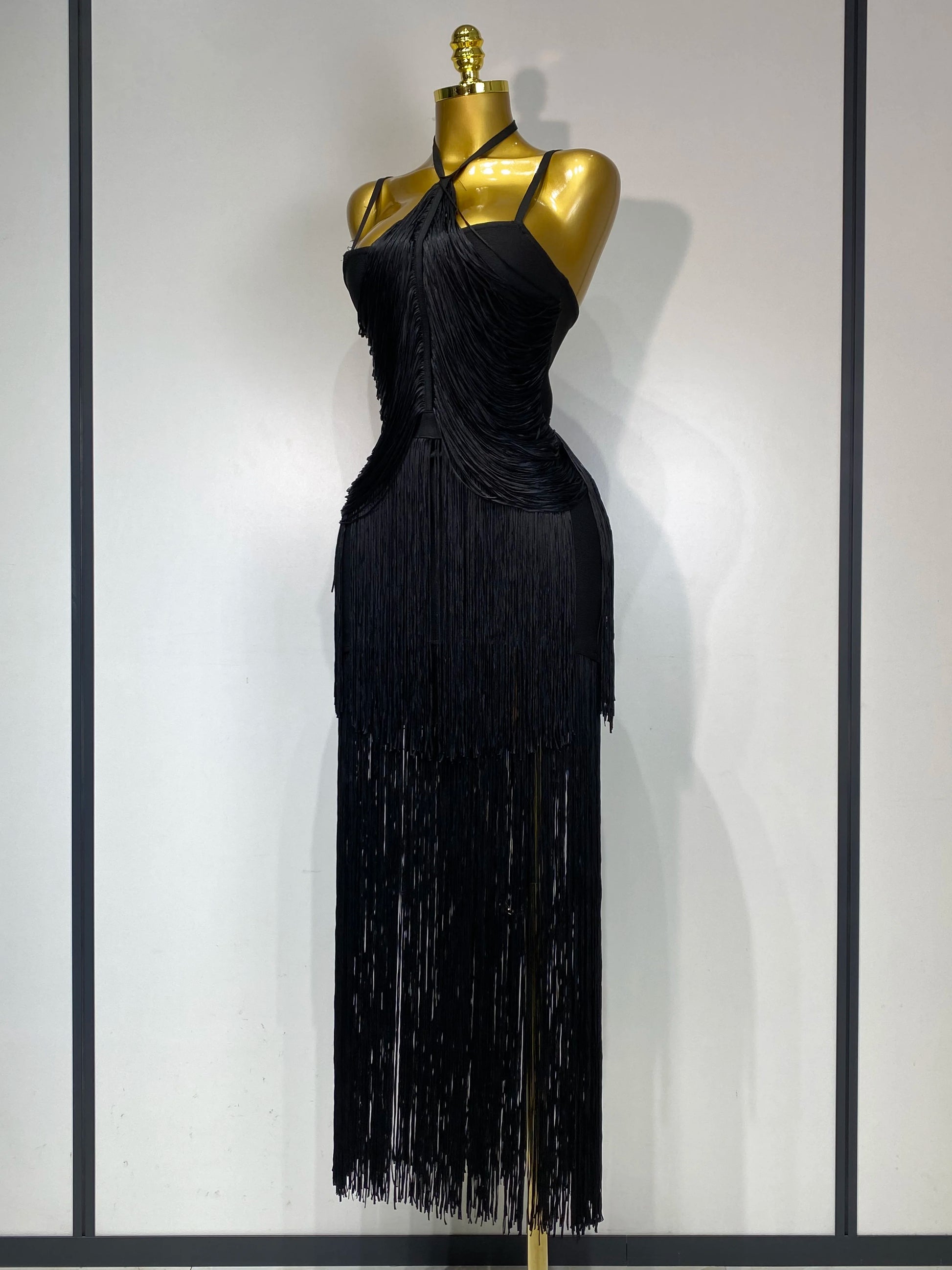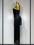 Women Sexy Backless Tassel Black Ankle Bodycon Bandage Dress 2025 Celebrity Elegant Evening Club Luxury Birthday Party Dresses