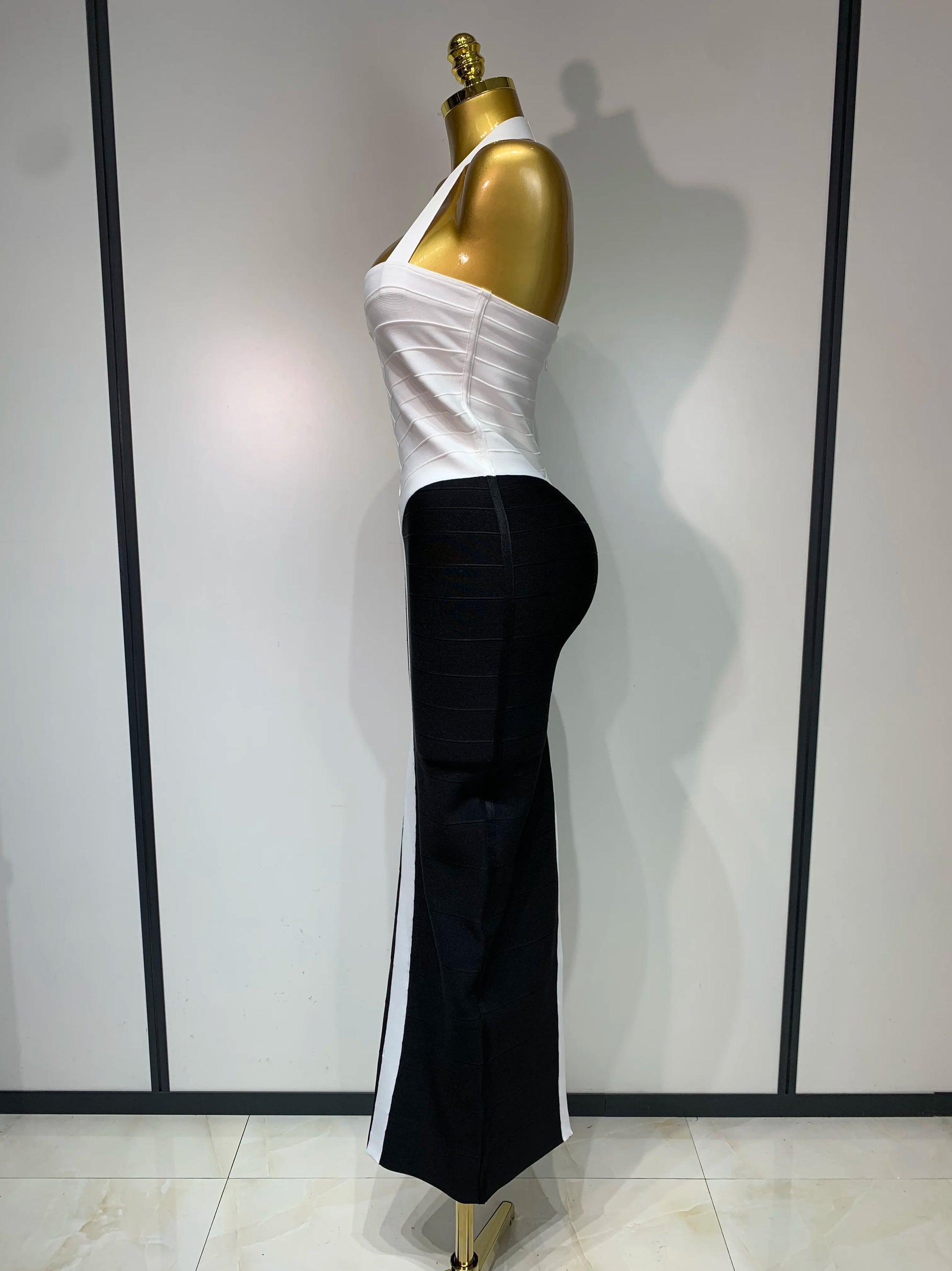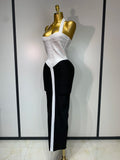 Women Sexy Halter Whiter Black Patchwork Bodycon Bandage Dress Celebrity Elegant Evening Party Club Luxury Birthday Dresses