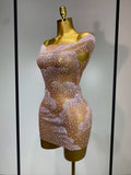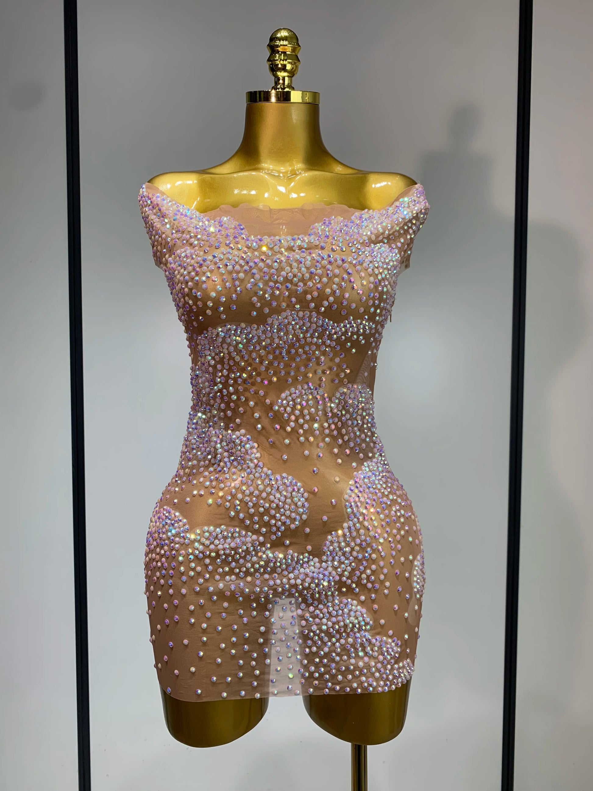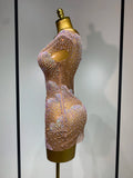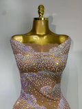 Women Sexy Mesh See Through Mini Dress Celebrate Birthday Evening Party Dress Luxury Rhinestones Stage Performance Costume