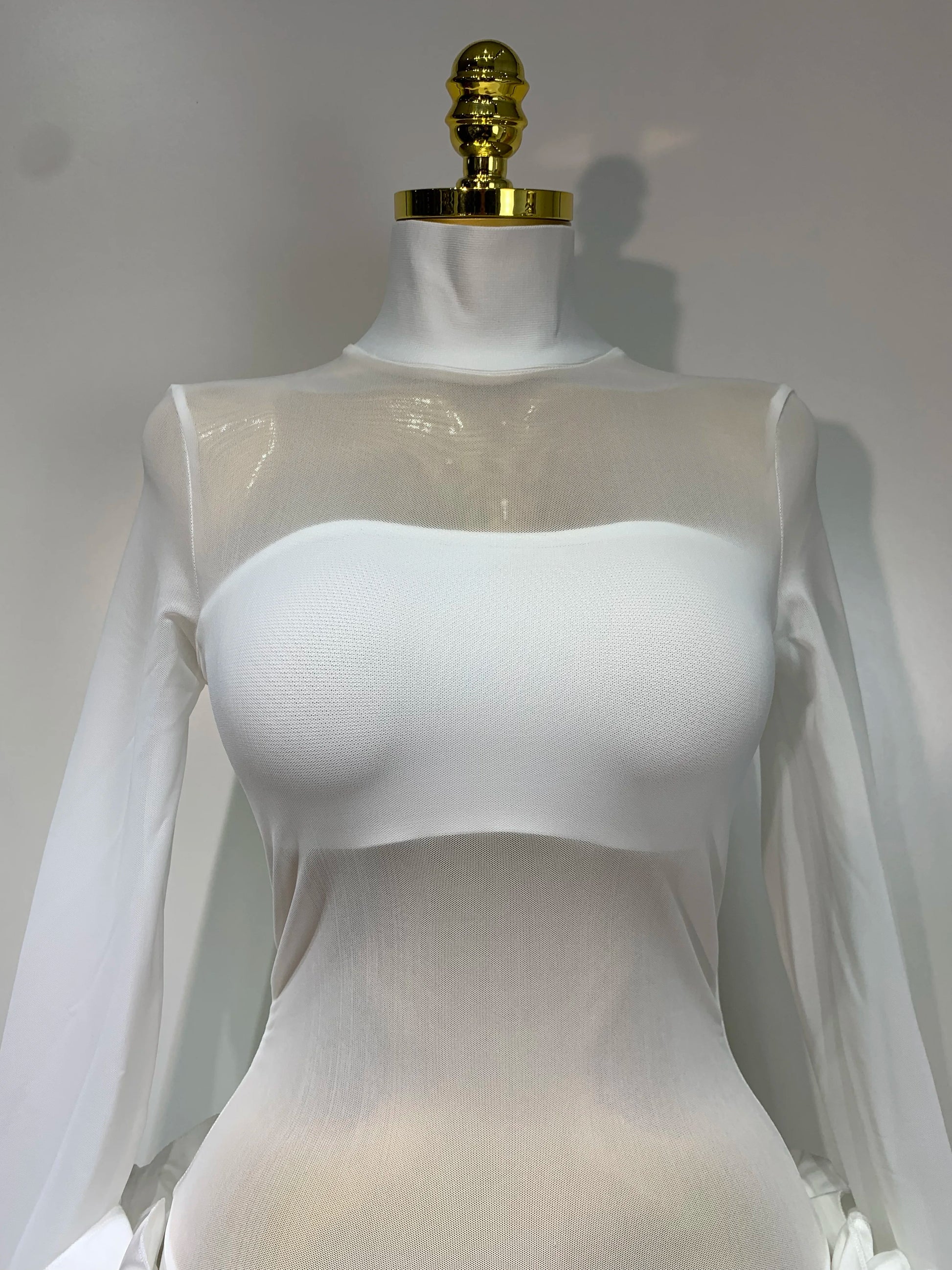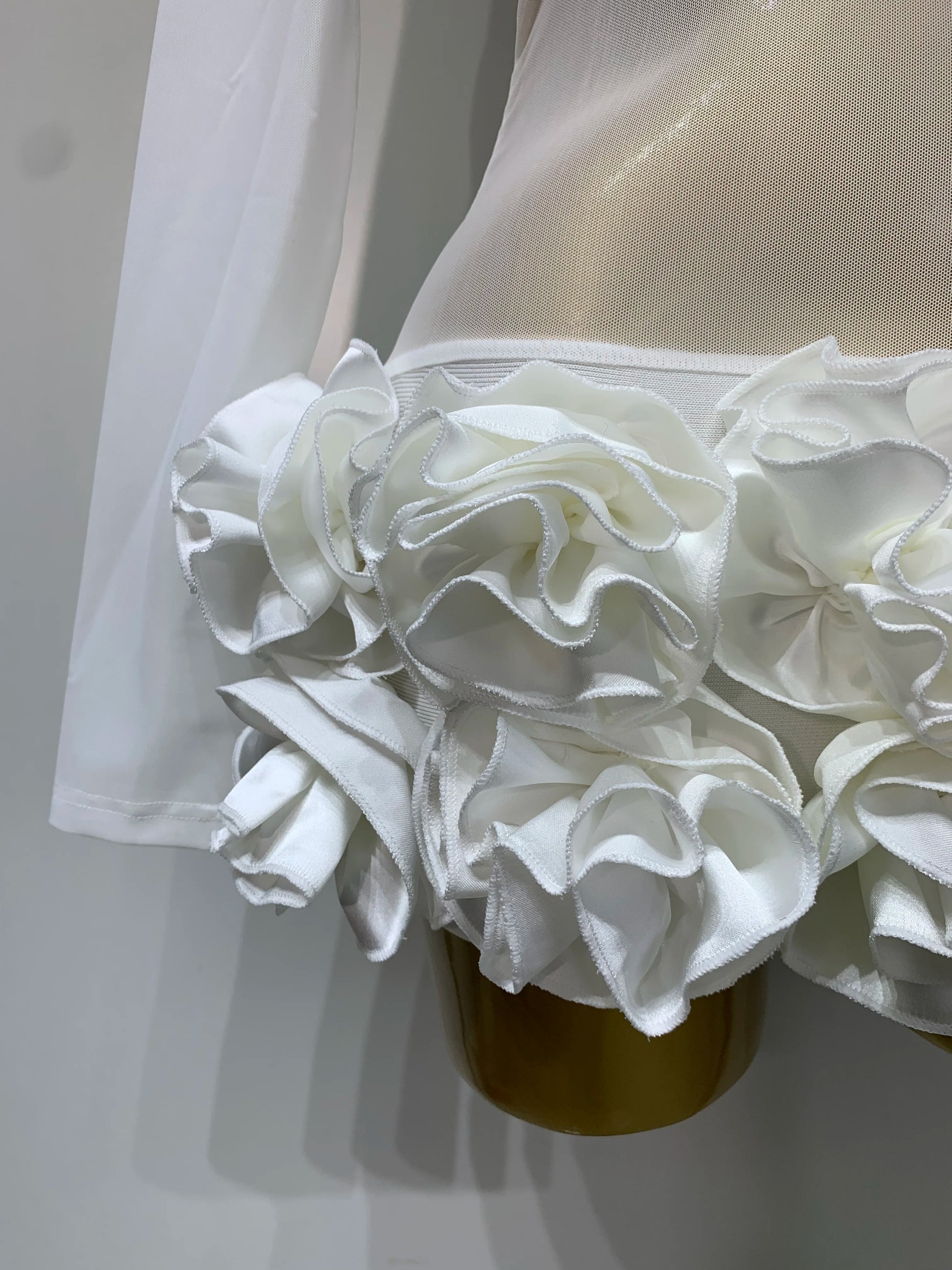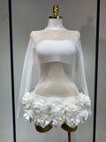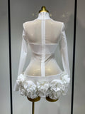 Women Sexy Mesh See through Stereoscopic Flowers White Red Mini Bandage Dress Birthday Evening Party Club Singer Perform Costume