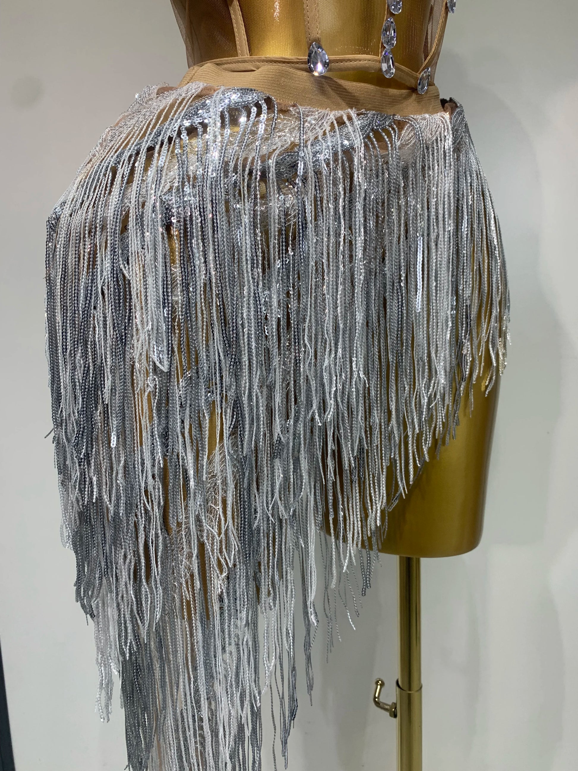 Women Sexy Singer Dancer Performan Costume Nightclub Bar Girl Sparkly Diamond Tassel Two Piece Set Evening Party Birthday Outfit