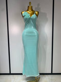 Women Sexy Sling V Neck Appliques Sequines Glitter Bodycon Long Dresses 2025 Luxury Birthday Party Celebrity Evening Prom Gown