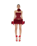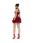 Women Sexy Strapless Laced up Bodycon Mini Tops 2 Pieces Florals Ball Gown Bandage Dress Christmas Celebrate Nightclub Wear