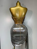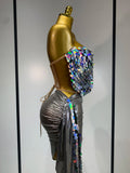 Women Sexy Strapless Sequin Glitter Two Pieces Set Celebirty Elegant Luxury Birthday Evening Party Nightclub Singer Stage Outfit