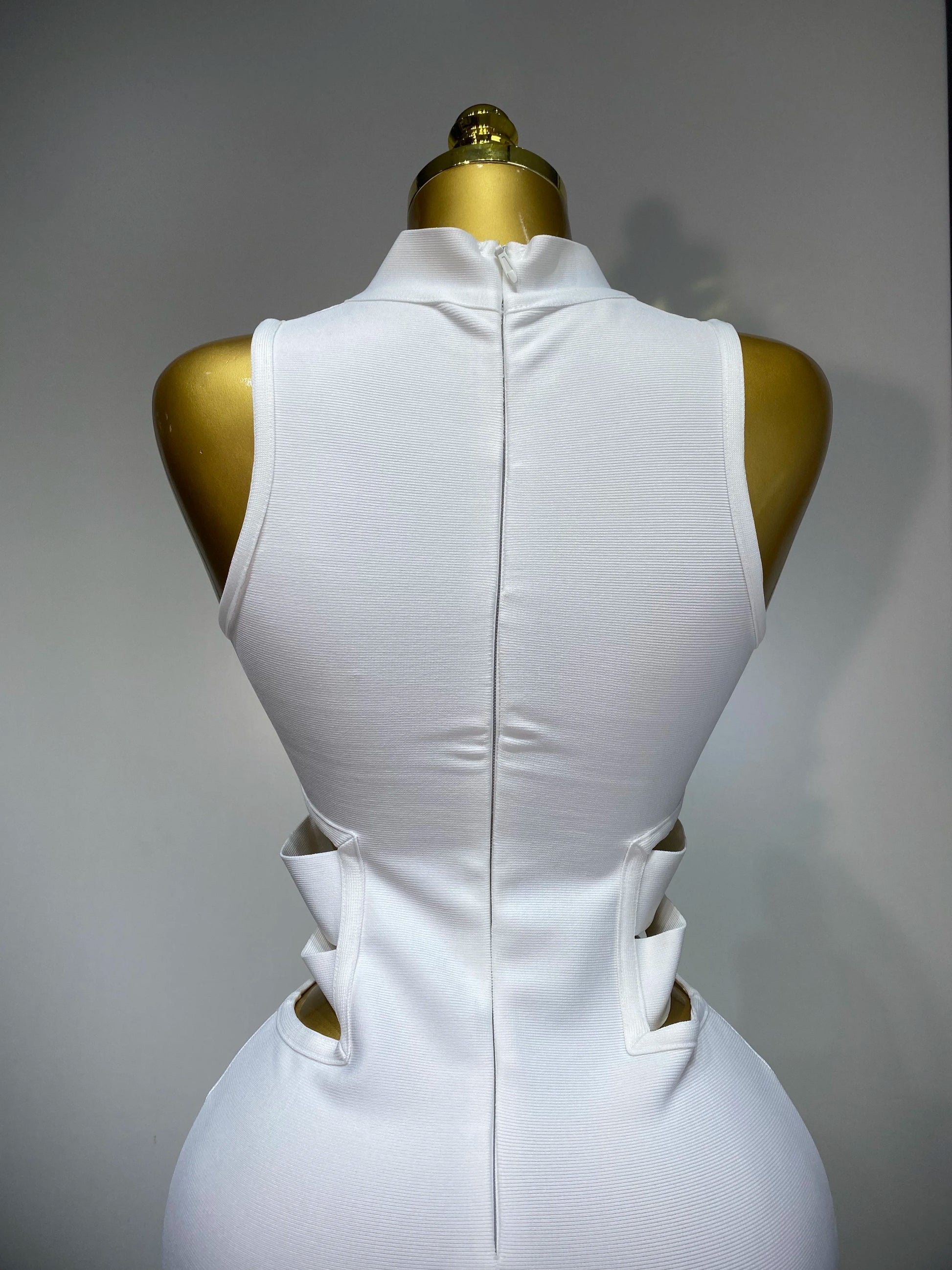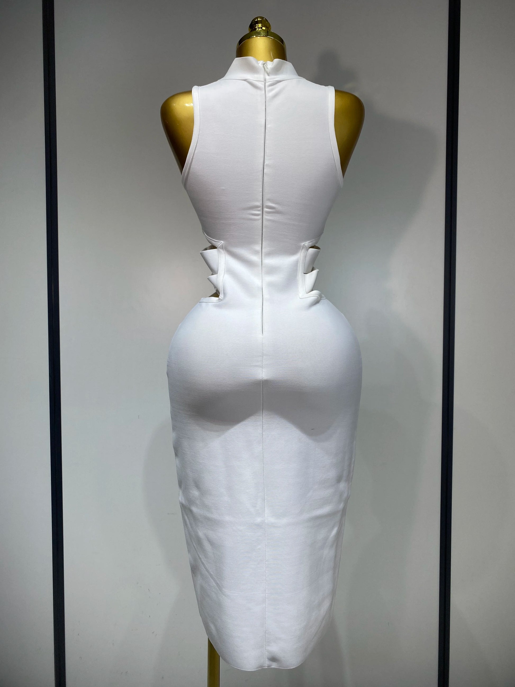 Women Sexy Turtleneck White Cut Out Midi Bodycon Bandage Dress 2025 White Elegant Evening Party Dress Luxury Birthday Dress
