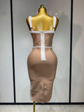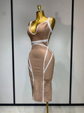 Women Sexy V Neck Striped Midi Bandage Bodycon Dress 2025 Celebrity Elegant Evening Club Party Luxury Birthday Outfit