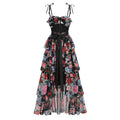 Women Sleeveless Sexy Strap Flowers Print Ruffles Loose Long Maxi Dress Evening Party Celebrate Birthday Vacation Outfit