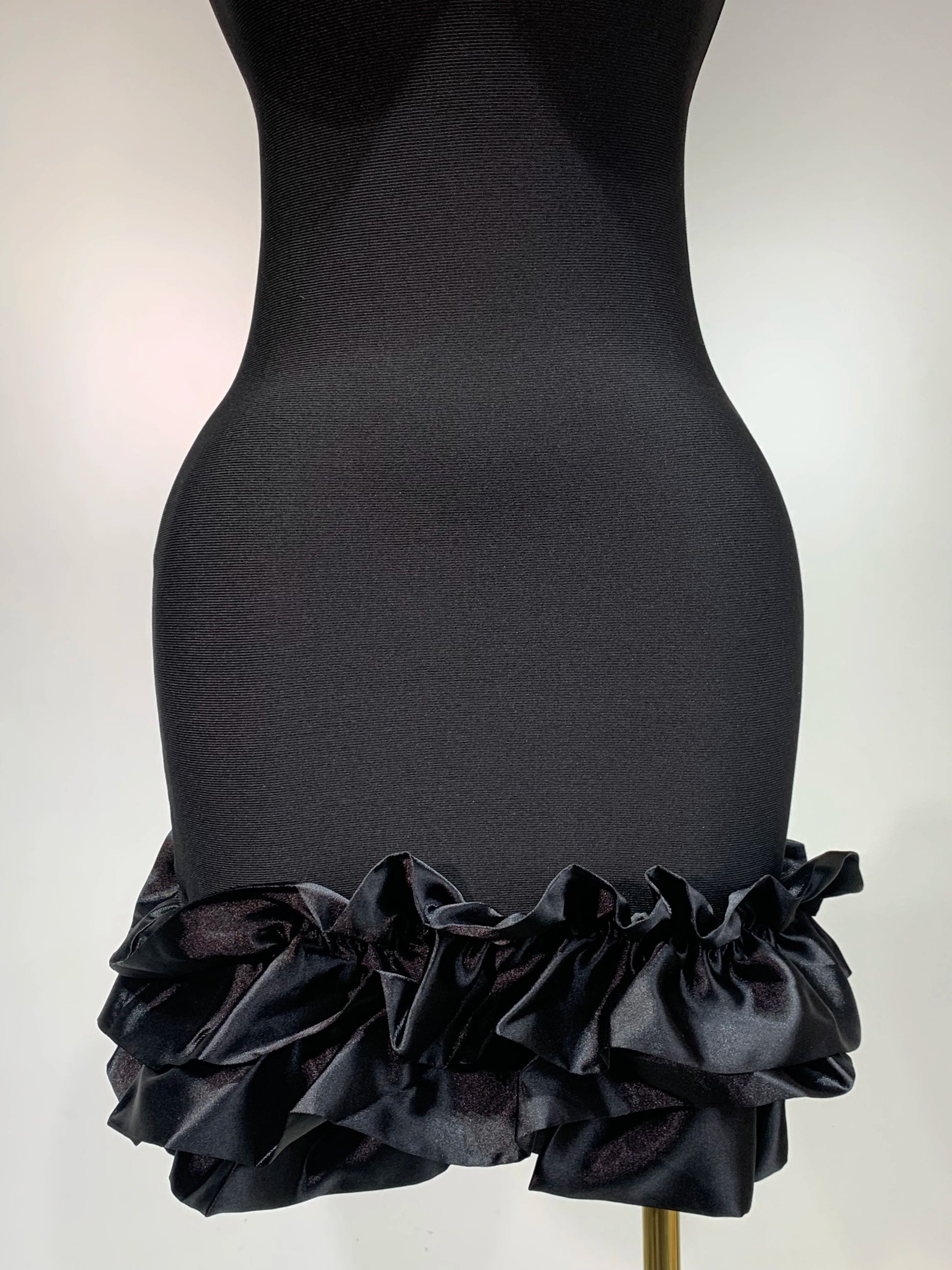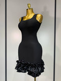 Women Spaghetti Strap Bodycon Short Dress Black Pleated Ruffle Hem Sleeveless Evening Party Cocktail Elegant Birthday Dresses