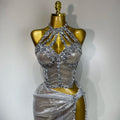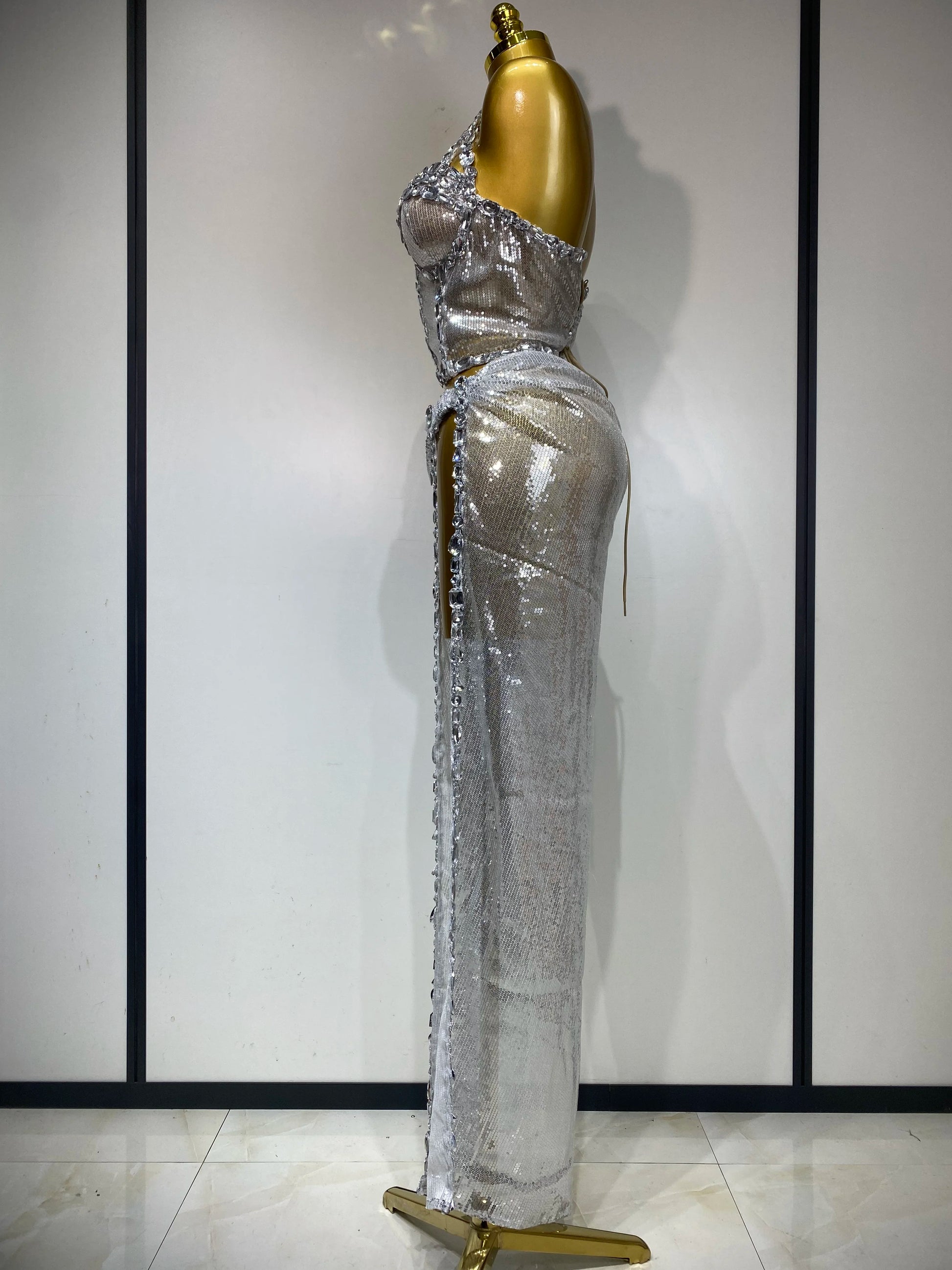 Women Sparkly 2025 Silver Rhinestones Top Long Skirt Two Pieces Set Singer Dancer Performance Costume Nightclub Stage Wear