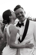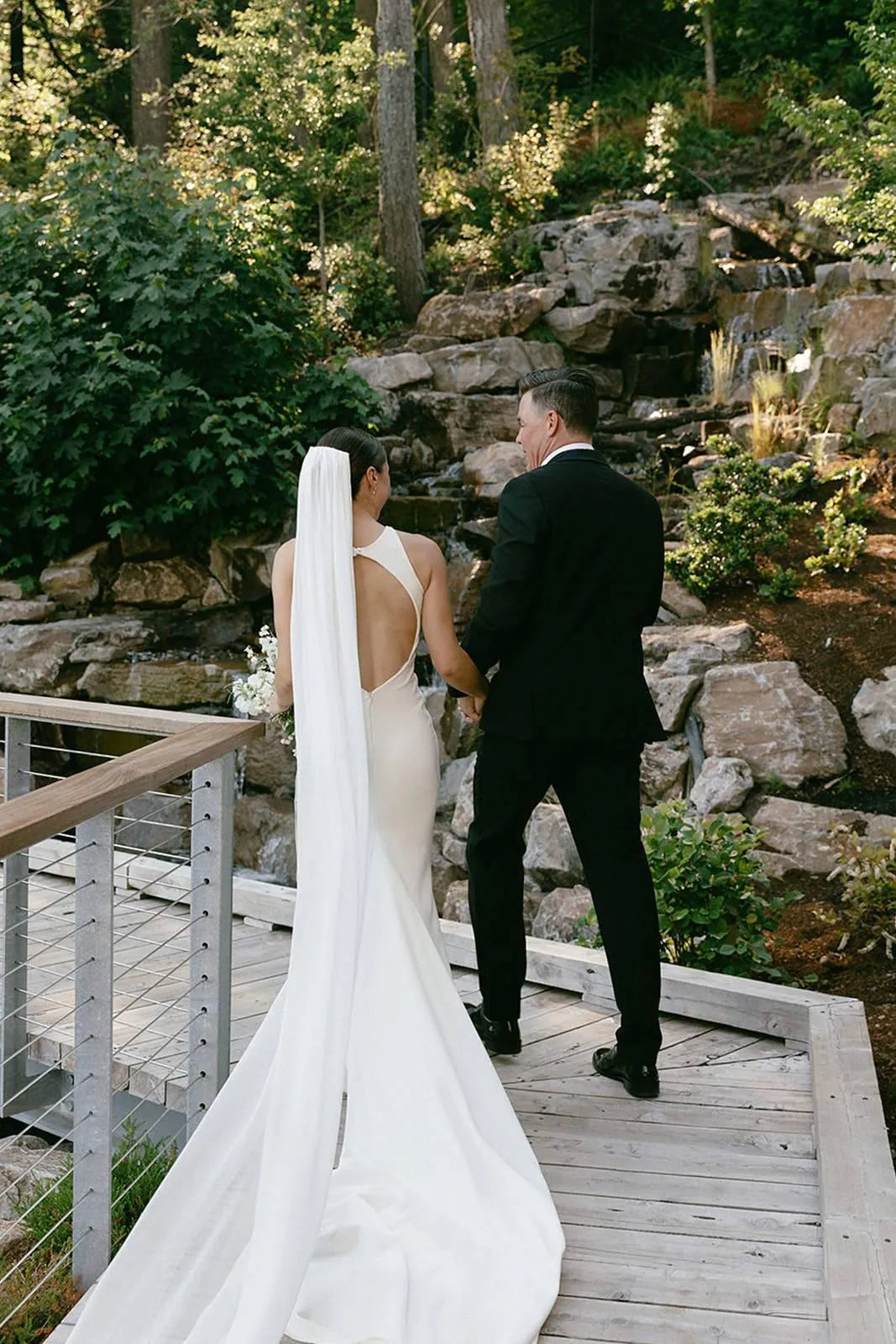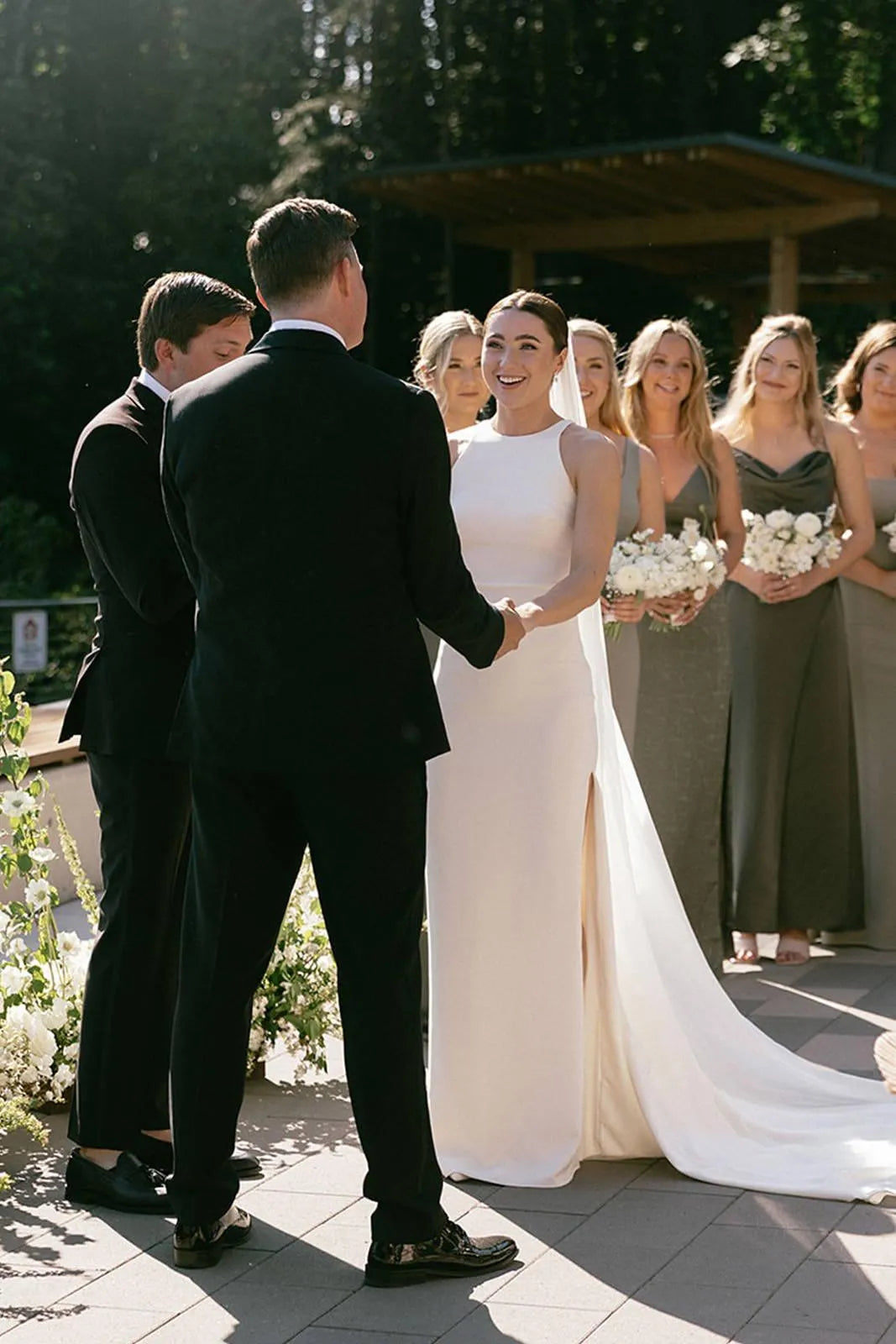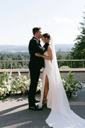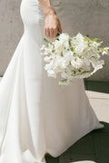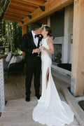 Yunshang Simples Sereia Vestidos de Noiva Mulheres O-pescoço Costas Abertas Sem Mangas Dividir Cetim Vestido de Noiva Sweep Train Vestidos De Novia