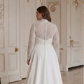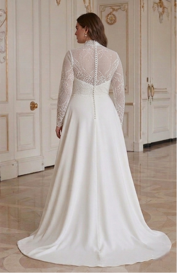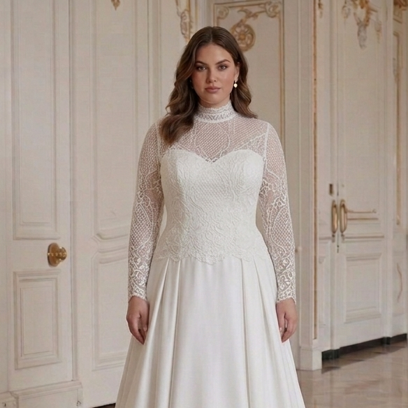 Rochie de mireasă cu design cu guler înalt pentru mirese plus size, stil modest