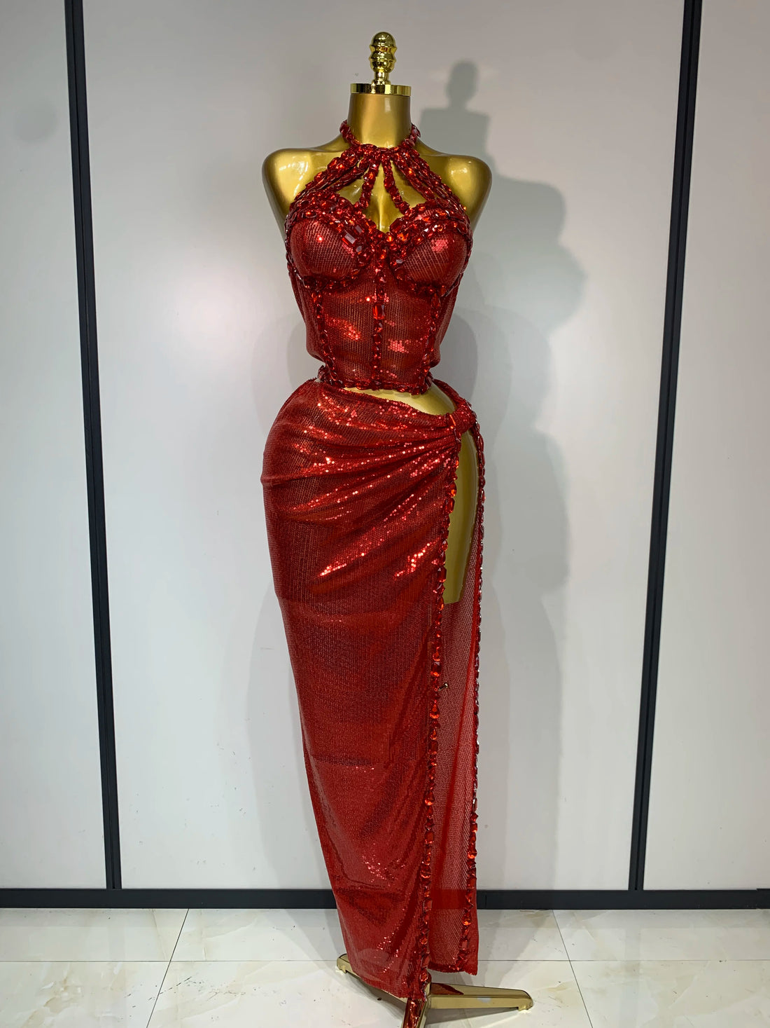 Sexy Backless Shiny Diamond Two Piece Set 2025 Women Elegant Evening Party Luxury Birthday Nightclub Singer Stage costume