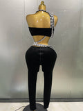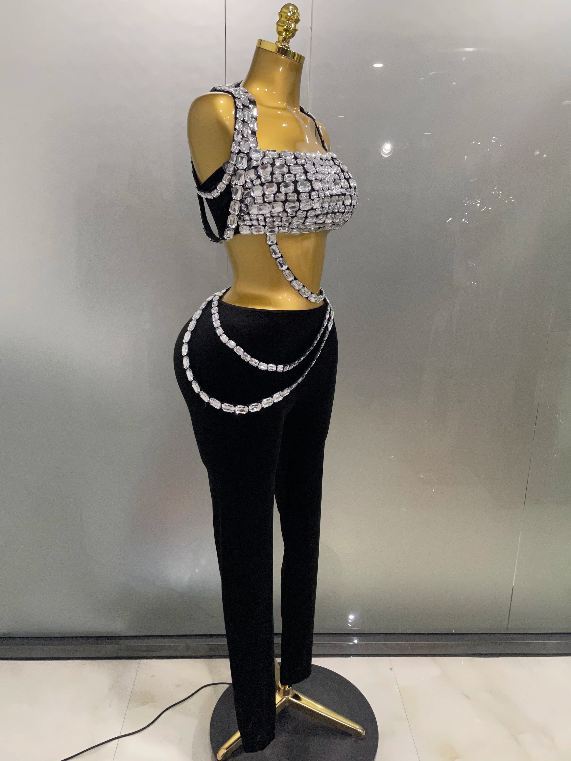 2025 New Luxury Sparkle Diamonds Sexy Crop Top Velour Pant Two Pieces Set Women Celebrate Birthday Party Nightclub Stage Costume