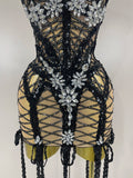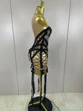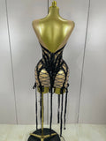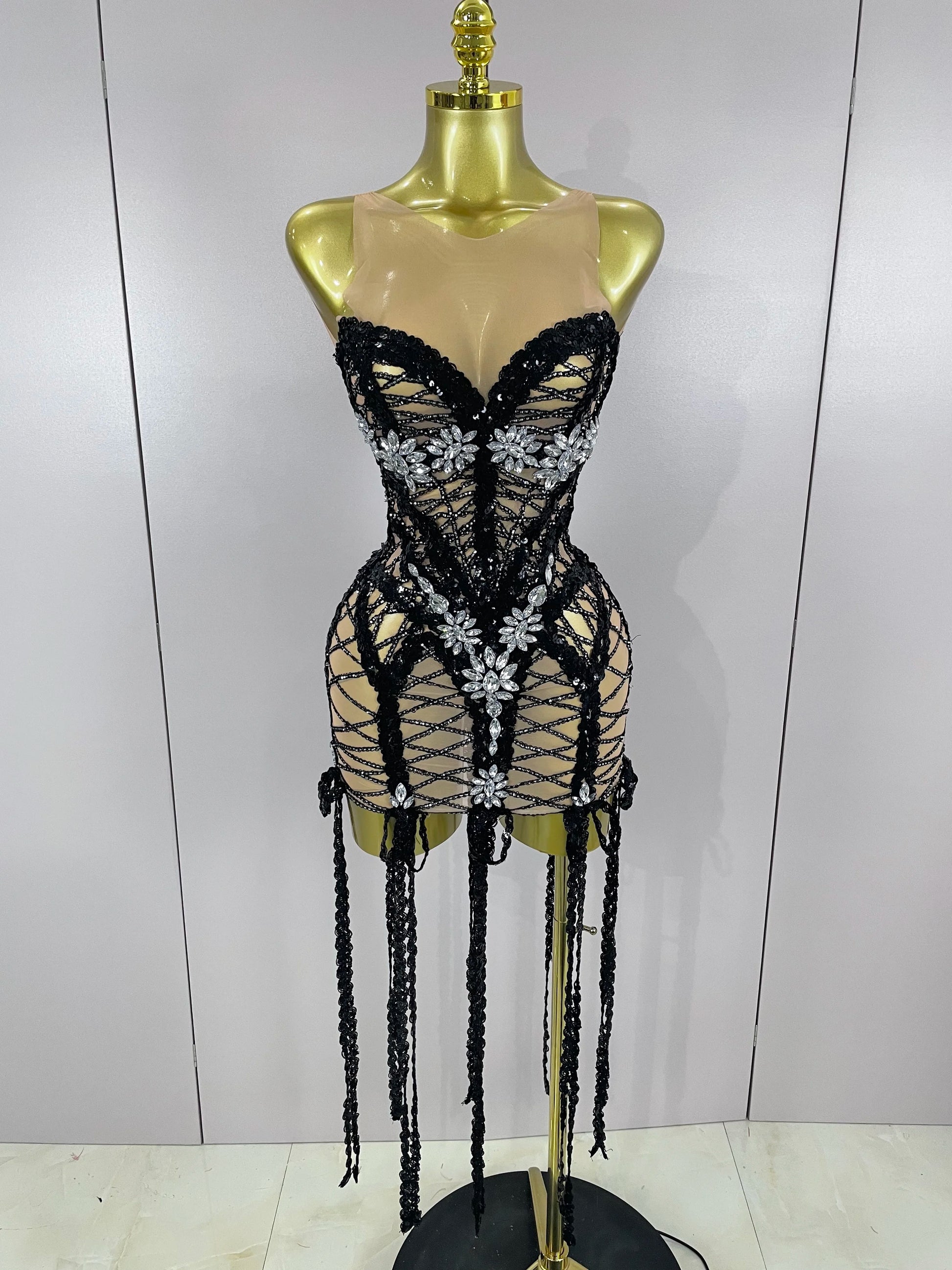 2025 Sparkle Sequins Embroider Diamonds Sleeveless Long Tassel Mini Dress Women Celebrate Evening Birthday Dress Stage Costume