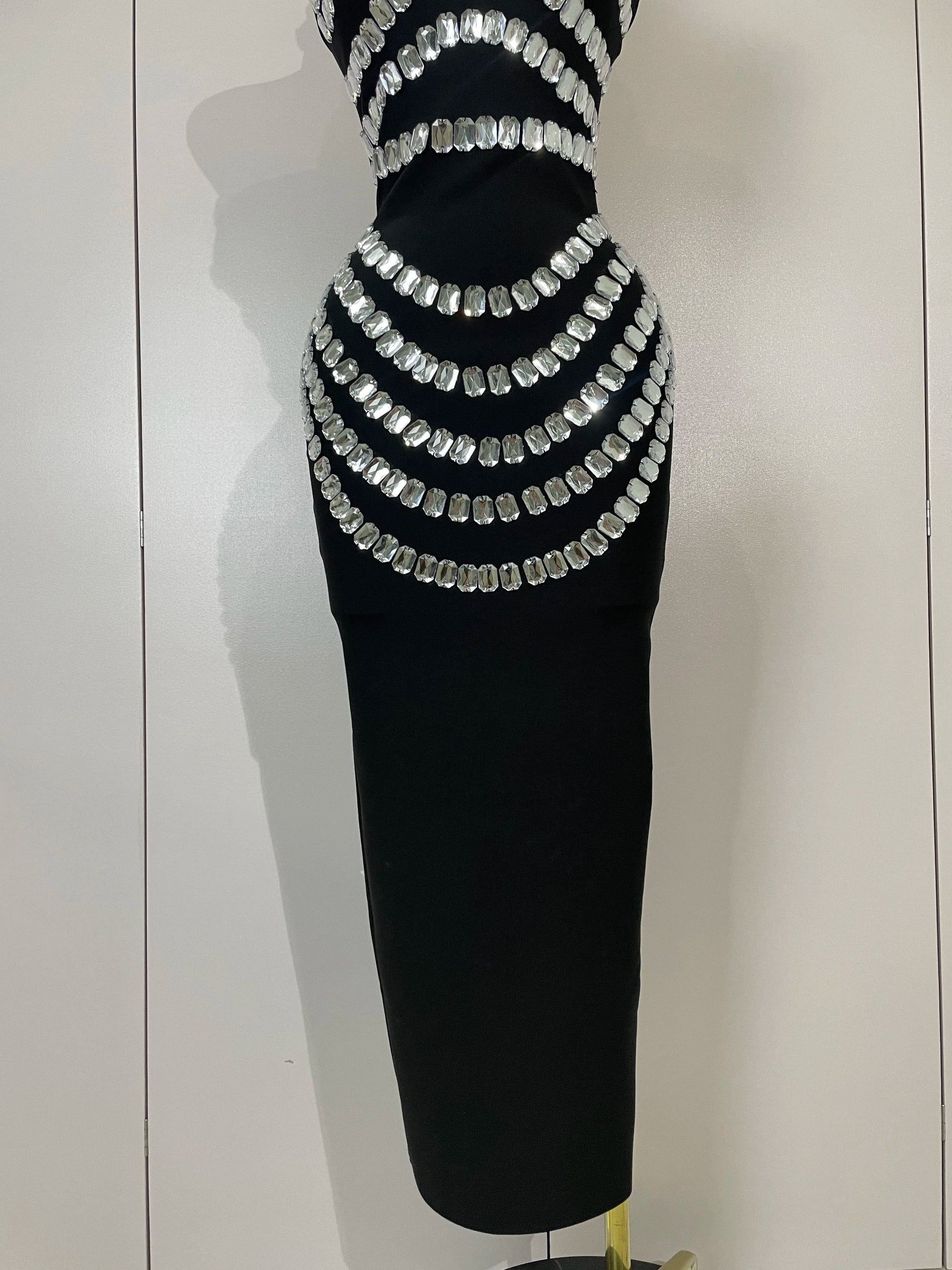 2025 Women Sexy Backless Strapless Black Beading Long Bandage Bodycon Dress Celebrity Elegant Evening Luxury Birthday Dresses