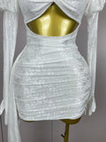 2025Women White Birthday Dress Fashion Long Sleeve O Neck Cut Out Bodycon Mini Trailing One Piece Celebrity Evening Club Dresses