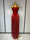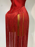 Fashion Design Long Tassel Patchwork Strapless Bandage Bodysuit Women Sexy High Street Evening Party Nightclub Hotwife Outfit