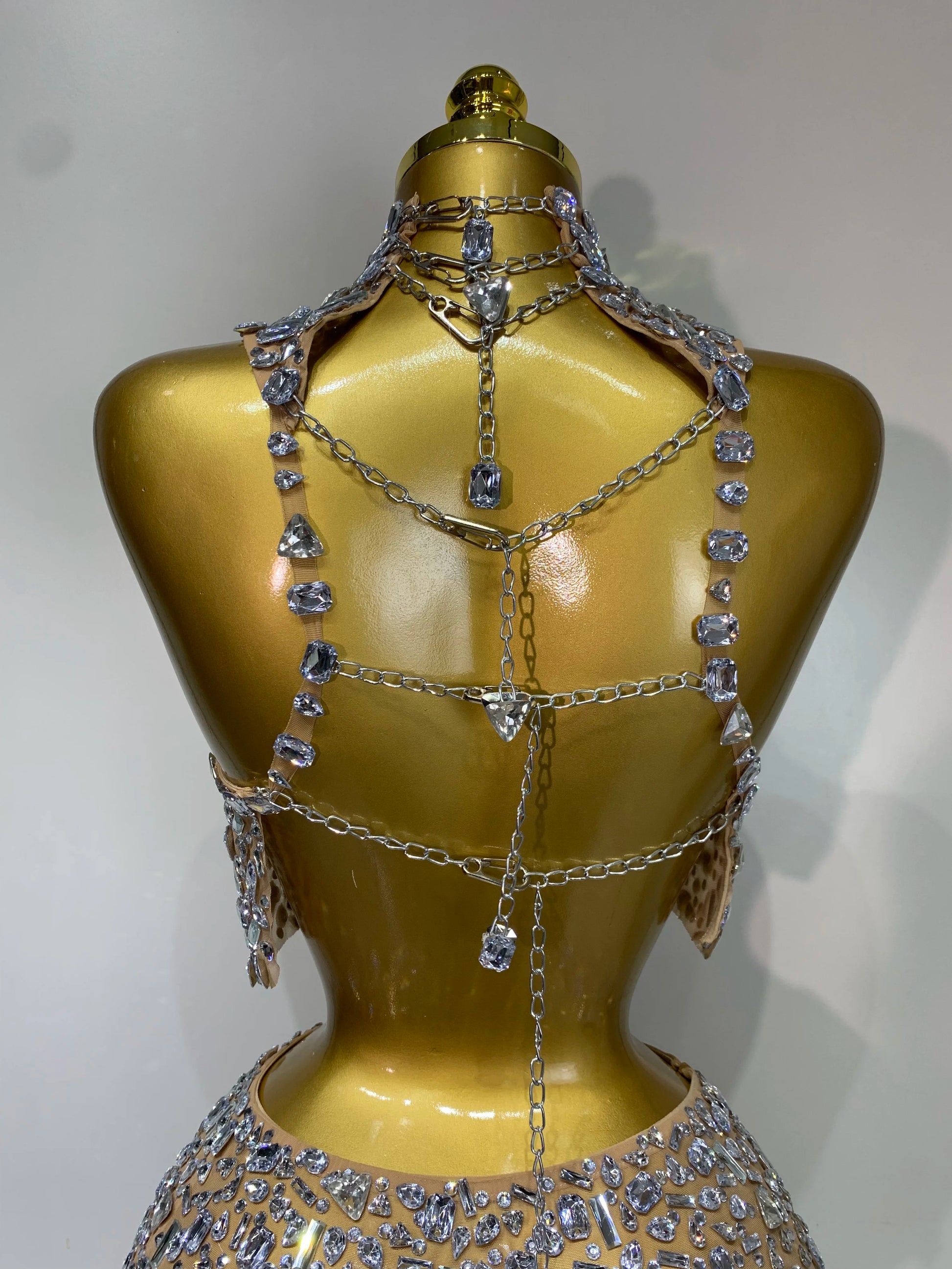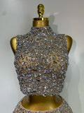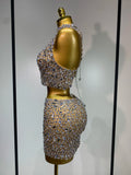 Sparkling Rhinestone Sexy See Through Blackless Top Skirt Two Pieces Set Woman Luxury Birthday Evening Party Gowns