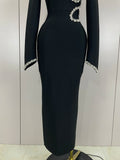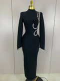 Sexy Long Sleeve Diamonds Maxi Long Bodycon Bandage Dress 2025 Women Celebrity Elegant Evening Party Luxury Birthday Dresses