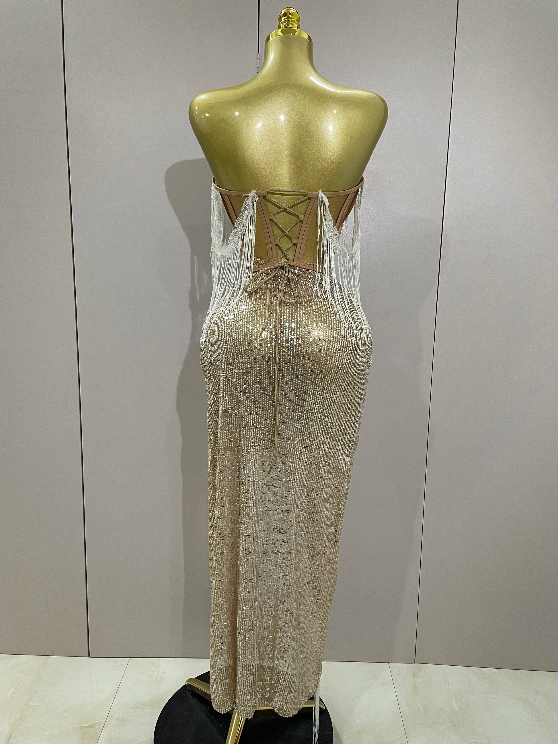 Sexy Luxury Sparkly Sequin Tassel Two Piece Set 2025 Women Evening Party Birthday Singer Performan Costume Nightclub Girl Outfit