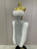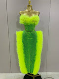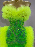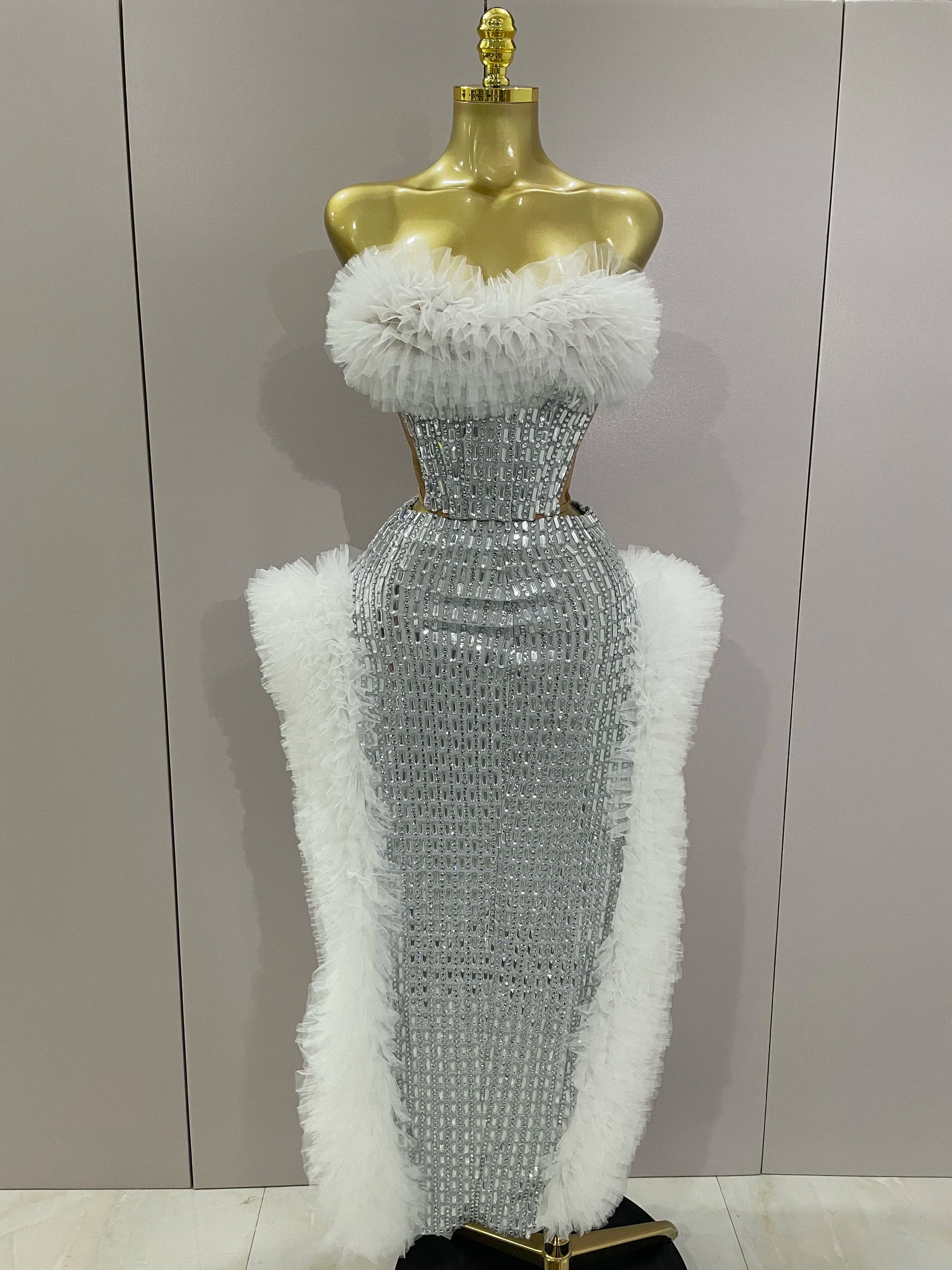 Sparkly Rhinestone Sexy Strapless Tops Skirt 2 PCS Set 2025 Women Celebrate Evening Prom Birthday Dress Nightclub Stage Outfit