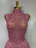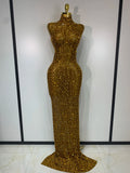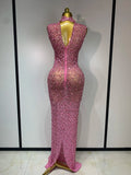 Sparkly Rhinestone Sleeveless Maxi Long Dress Sexy Mesh See Through Luxury Birthday Dress Evening Party Singer Stage Outfit