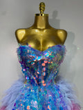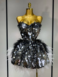 Sparkly Sequins Ruffles Two Pieces Set Sexy Backless Top Skirt Set Nightclub Performance Dance Dress Singer Stage Outfit