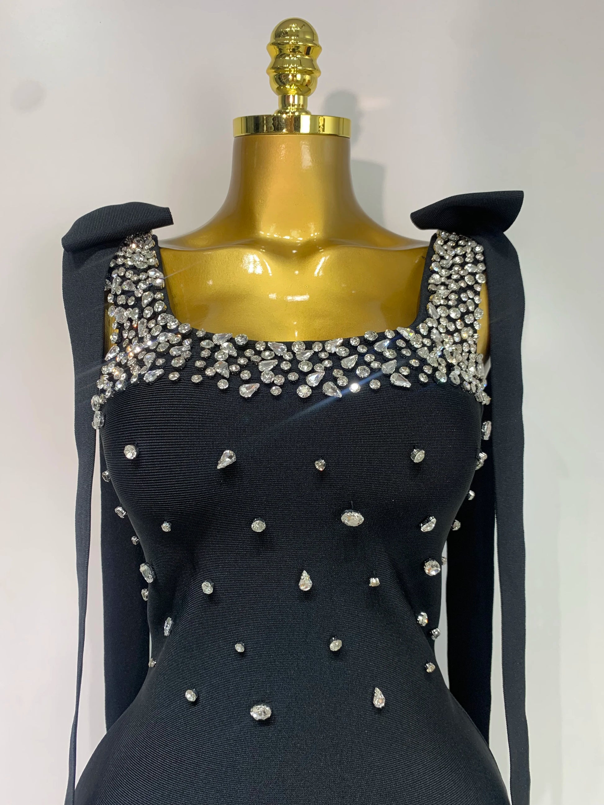 Women Celebrity Sexy Sparly Diamonds Black Mini Bodycon Bandage Dress 2025 Elegant Evening Party Luxury Birthday Dresses