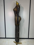 Women Sexy Long Sleeve Mesh See Through Dress 2025 Elegant Evening Party Luxury Birthday Club Rhinestone Performance Costume