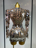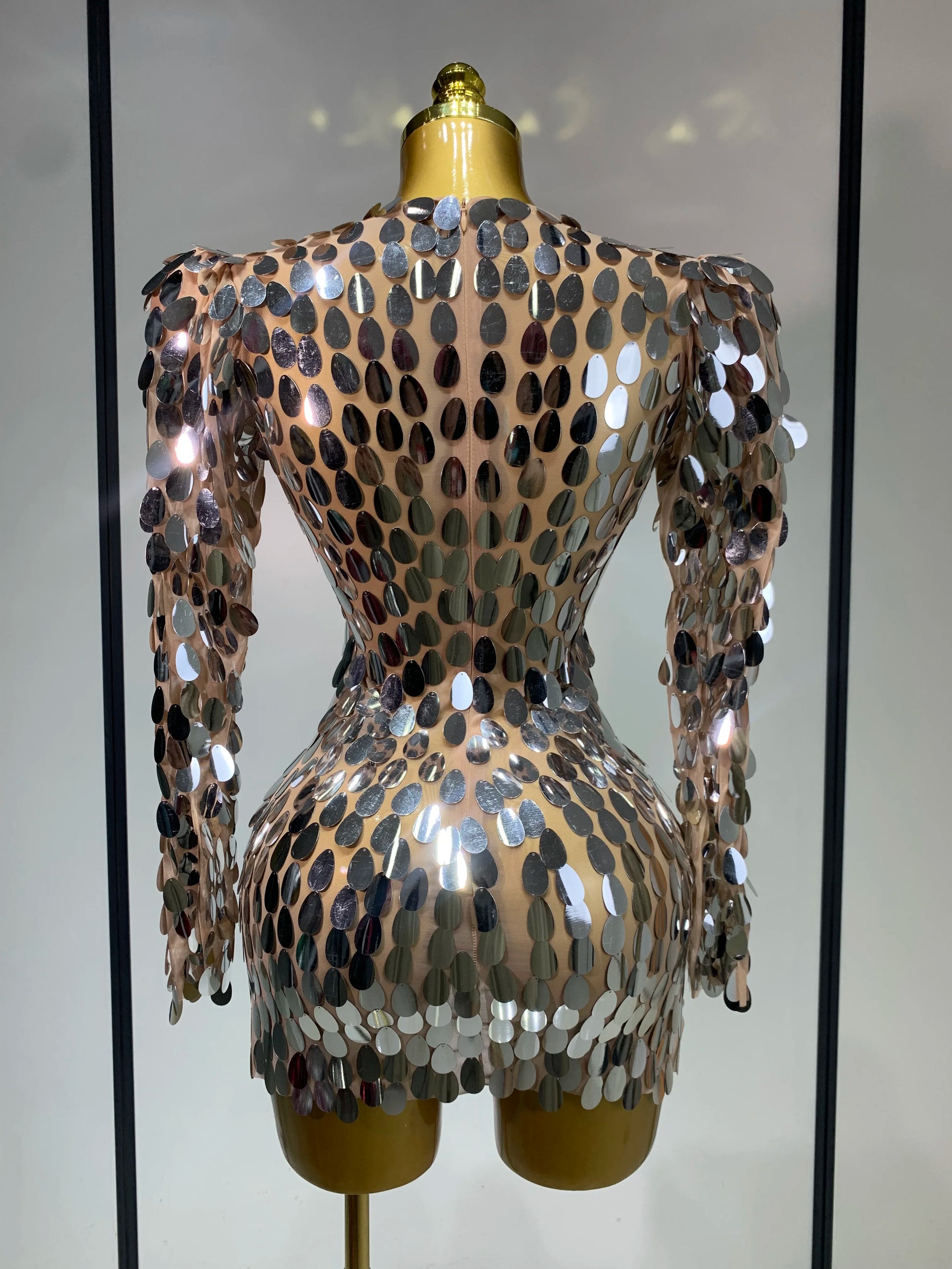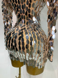 Women Sexy Mesh Stretch Sparkly Sequins Stage Performance Costume Dancer Singer Nightclub Evening Party Luxury Birthday Dress
